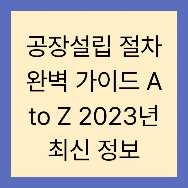공장설립 절차 완벽 가이드 A to Z 2023년 최신 정보
