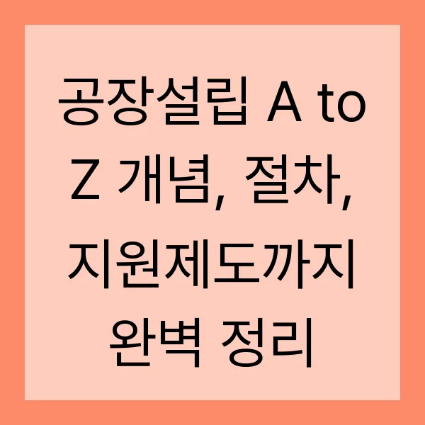 공장설립 A to Z 개념, 절차, 지원제도까지 완벽 정리