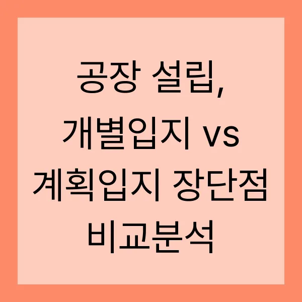 공장 설립, 개별입지 vs 계획입지 장단점 비교분석