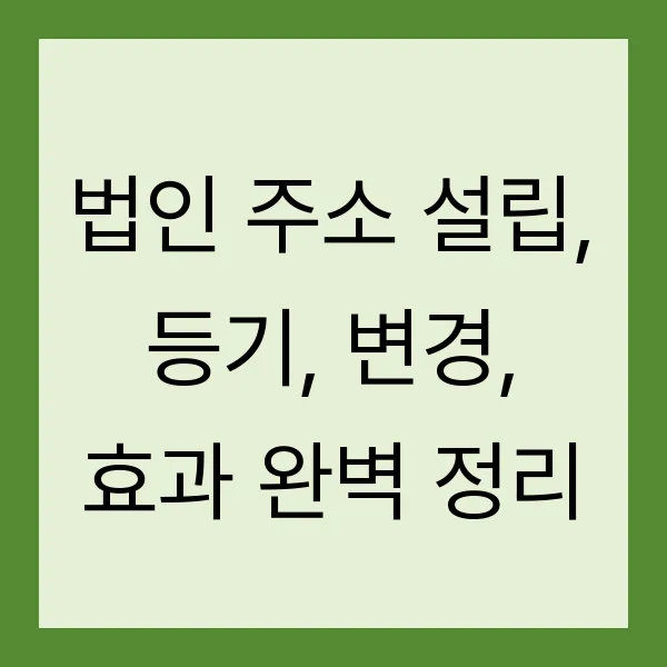 법인 주소, 어렵게 생각하셨나요? 🤔 설립부터 등기, 변경, 그리고 그 효과까지, 핵심만 쏙쏙! 뽑아 완벽하게 정리했습니다. 주소 하나로 법인 운영의 A to Z를 마스터하세요! 🚀 사업의 성패를 좌우할 법인 주소, 지금 바로 확인해보세요!