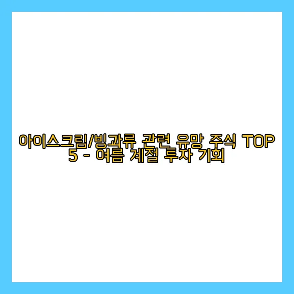 아이스크림/빙과류 관련 유망 주식 TOP 5 - 여름 계절 투자 기회