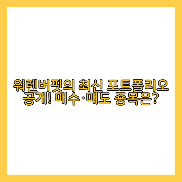 전설적인 투자자 워렌버핏의 최신 포트폴리오가 공개되었습니다. 주가 상승의 신호탄일까요? 그의 투자 행보를 면밀히 살펴보면 많은 것을 배울 수 있습니다. :)