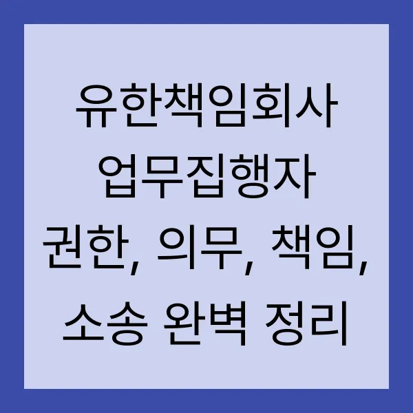 유한책임회사 운영의 핵심, 업무집행자! 그들의 권한과 책임, 의무는 무엇일까요? 혹시 발생할 수 있는 소송까지, 2025년 최신 정보를 바탕으로 완벽하게 정리했습니다. 창업을 준비하거나 회사를 운영하는 모든 분들께 필수적인 정보, 지금 바로 확인하세요! (키워드: 유한책임회사, 업무집행자, 권한, 의무, 책임, 소송, 경업금지, 자기거래, 대표소송)