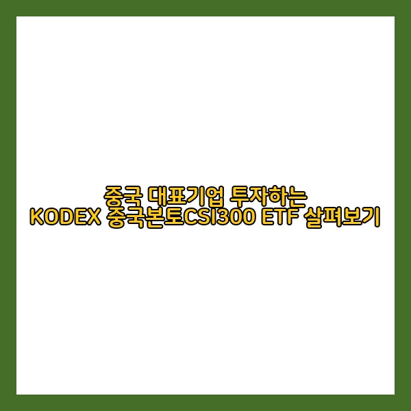 안녕하십니까, FC 윤석민입니다. 오늘은 급부상 중인 중국 주식시장에 투자할 수 있는 KODEX 중국본토CSI300 ETF에 대해 자세히 살펴보겠습니다.😊 이 ETF는 중국 증시의 대표 지수인 CSI300을 완벽하게 추종하는 상품으로, 중국 우량 기업에 분산 투자할 수 있는 기회를 제공합니다.