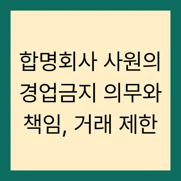 합명회사는 인적 신뢰관계를 바탕으로 운영되는 회사인 만큼, 사원들의 의무와 책임이 중요합니다. 그중에서도 특히 경업금지 의무와 자기거래 제한은 회사의 이익을 보호하고 사원 간의 공정한 경쟁을 유지하기 위한 핵심적인 규정입니다. 오늘은 합명회사 사원의 경업금지 의무와 그에 따른 책임, 그리고 자기거래 제한에 대해 자세히 알아보도록 하겠습니다.