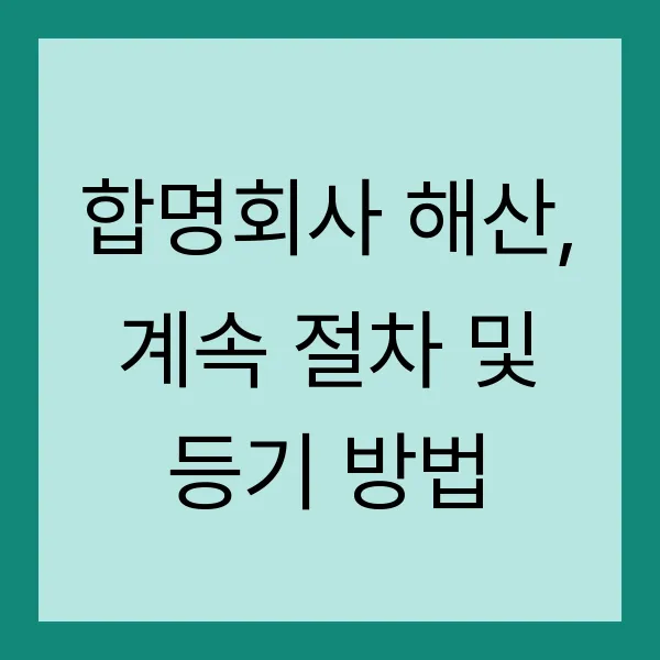 합명회사의 해산과 계속은 중요한 결정이므로, 신중하게 고려해야 합니다. 필요한 경우 전문가의 도움을 받아 최선의 선택을 하시길 바랍니다.