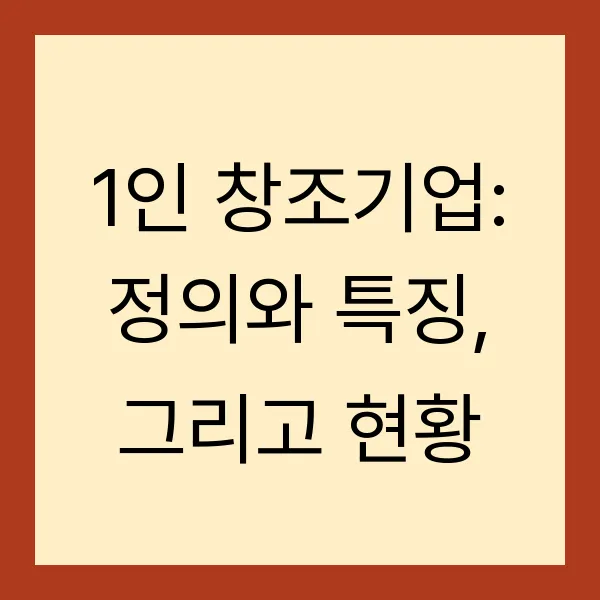 1인 창조기업, 들어보셨나요? 창의력과 전문성으로 무장한 1인 또는 5인 미만의 소규모 사업자들이죠! 자본은 적지만 열정만큼은 대기업 못지않은 이들이 경제 성장의 숨은 주역으로 떠오르고 있습니다. 이 글에서는 1인 창조기업의 정의와 현황, 정부 지원 정책, 그리고 성공 전략까지 낱낱이 파헤쳐 보겠습니다. 미래의 혁신을 꿈꾸는 당신, 주목하세요!